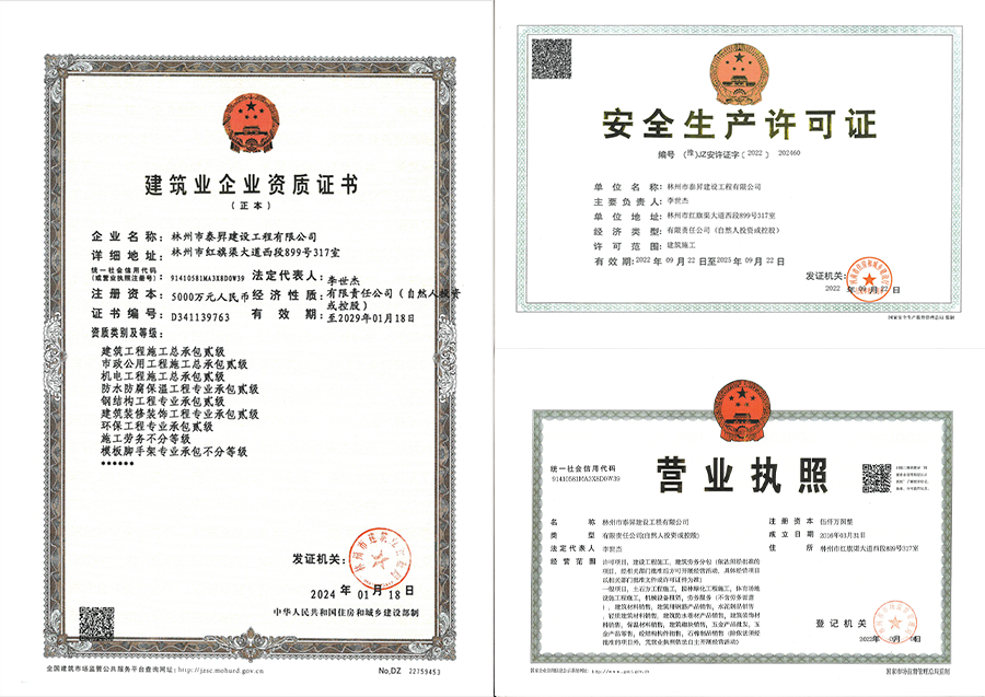 林州市泰昇建設工程有限公司始于1980年初,正式成立于2016年3月1日,注冊資金5000萬元,公司地址位于著名的“建筑之鄉(xiāng)”河南省林州市,是林州人創(chuàng)立的一家有著四十多年發(fā)展底蘊的專業(yè)化、標準化建筑工程公司。 公司現有員工376人,各類專業(yè)技術人員89人,其中一級建造師6人,二級建造師18人,擁有中高級職稱的工程技術和工程管理人員27人,初級技術管理人員38人。 “精細管理、精準經營,精益求精打造精品工程;為人樸實、工作扎實,踏踏實實做實企業(yè)發(fā)展?!边@是泰昇人在艱苦的創(chuàng)業(yè)過程中磨礪出來的企業(yè)性格。